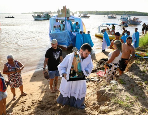 Na segunda-feira, data em que é celebrado o dia da santa, o ponto alto foi a procissão terrestre, com participação de milhares de fiéis e devotos de municípios de vários estados, agradecendo as graças alcançadas e fazendo promessas.