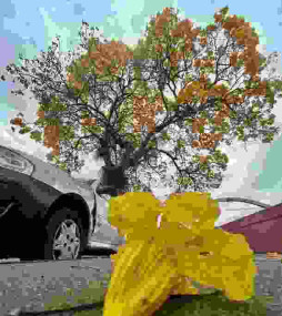 A segunda hipótese é de que seja um Ipê-Amarelo Nativo, de maior porte, que pode alcançar entre 10 e 20 metros e cuja floração costuma ocorrer entre agosto e outubro.