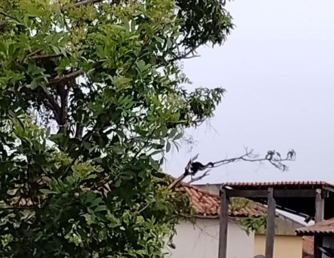 O órgão C atendeu, ... "onde está o macaco?" O macaco está nas árvores dos quintais e em um terreno vazio na quadra da Rua Cândido Álvaro Machado esquina da Alberto Torres.