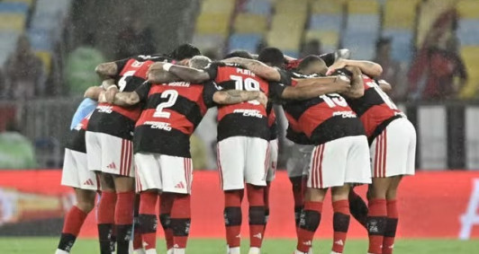 Jogadores do Flamengo reunidos antes do jogo com o Lanús