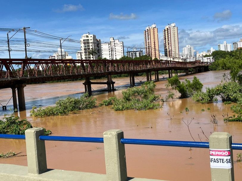 Na tarde deste domingo, rio atingiu a marca de 9,85 metros, sendo que a cota de transbordo é de 10,80 metros, no entanto, o rio poderá estabilizar nas próximas horas; durante vistoria, a Defesa Civil Municipal identificou um recalque no vão central da ponte