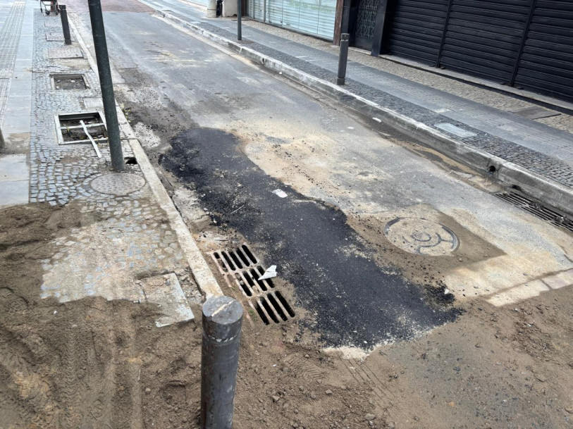 Fios das caixas de energia permanecem expostos e bancos seguem quebrados, além de arrombamento registrado; já um buraco que foi alvo de reclamações é tampado na Rua Carlos Lacerda
