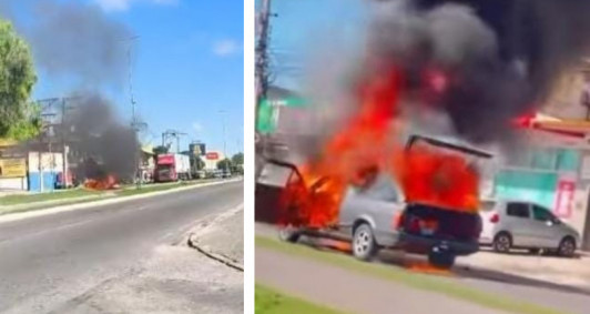 Um carro pegou fogo na manhã desta terça-feira (23) na Avenida Senador José Carlos Pereira Pinto, em frente ao shopping de Guarus, em Campos. Não há registro de feridos. A situação deixou o trânsito lento na avenida por um tempo.