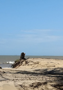 Nas imagens, é possível observar grande inclinação nas vegetações, que se tratam de casuarinas, amplamente introduzidas em regiões tropicais e subtropicais, conhecidas por seu uso em reflorestamento, quebra-ventos e ornamentação e também são encontradas de maneira comum próximo às dunas da praia de Atafona e outras ao redor do município.