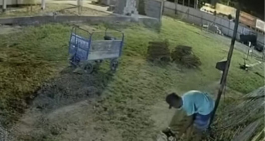 O suspeito chega ao local, com ferramentas, e depois aponta um objeto para cortar o cabo de um poste de iluminação da área do canteiro de obras ao lado da Rodoviária do Shopping Estrada. Foram furtados fios elétricos, além de ferramentas utilizadas na execução da obra. O crime não comprometeu o trabalho e segue normalmente.