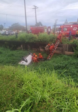 O Corpo de Bombeiros informou que foi acionado por volta das 5h para um capotamento de veículo. No local, o veículo foi encontrado já dentro do valão. Em seguida, os militares socorreram as duas vítimas, uma com ferimentos graves e a outra com ferimentos moderados para o Hospital Ferreira Machado (HFM). A causa do acidente não foi informada até o momento.