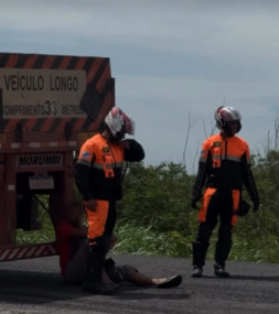 As imagens ainda mostram o motorista do lado de fora do veículo, sentado no chão, enquanto recebe atendimento do Corpo de Bombeiros. Até o momento, não há informações atualizadas sobre o estado de saúde do motorista. Segundo informações, ele teria perdido o controle da direção e atingido a estrutura.