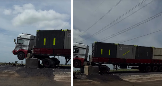 Um acidente envolvendo um caminhão foi registrado na manhã desta quarta-feira (11), na RJ 238, mais conhecida como Estrada dos Ceramistas, em Campos. Em imagens que circulam nas redes sociais, é possível ver que o veículo colidiu em uma estrutura de concreto e, devido ao impacto, a cabine ficou suspensa.