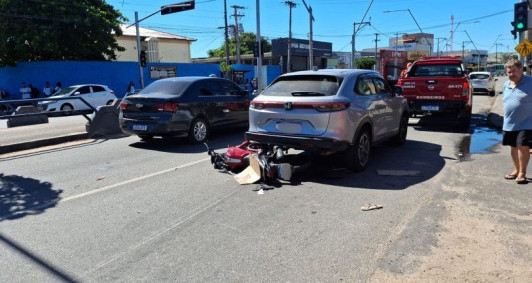 Colisão entre carro e moto deixa dois feridos na Avenida 28 de Março, em Campos